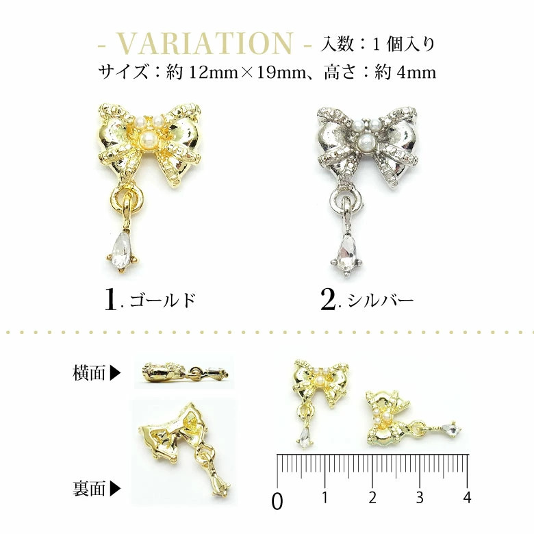 ネイル ジュエリー ビジュー パーツ リボン ティア ピアス 1個入り 152