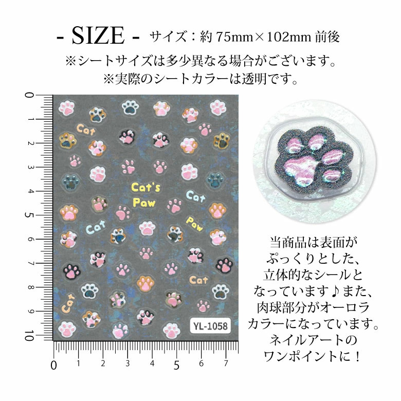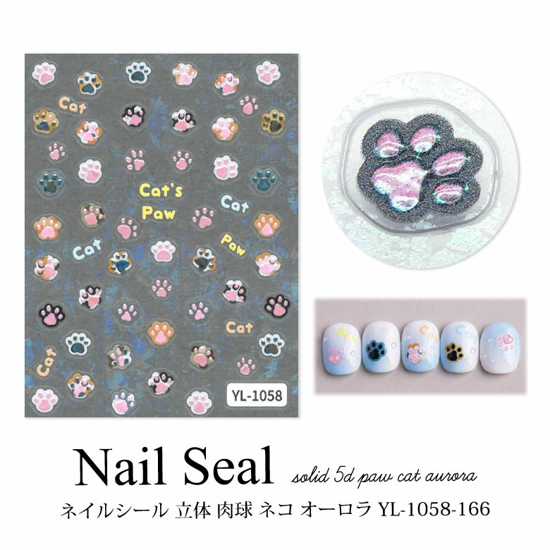 ネイルシール 立体 肉球 ネコ オーロラ YL-1058-166