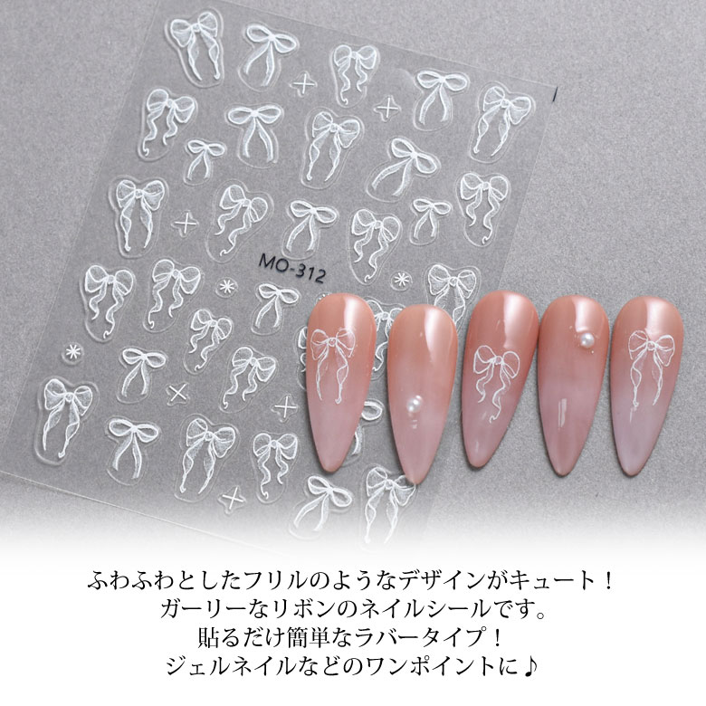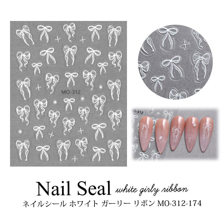 ネイルシール ホワイト ガーリー リボン MO-312-174