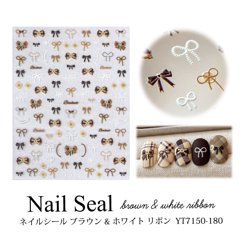 ネイルシール ブラウン & ホワイト リボン 1枚入り YT7150-180