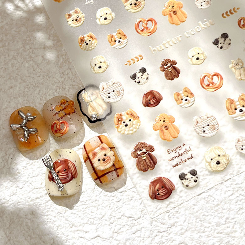クッキーやお菓子のようなキュートな犬のネイルシール!