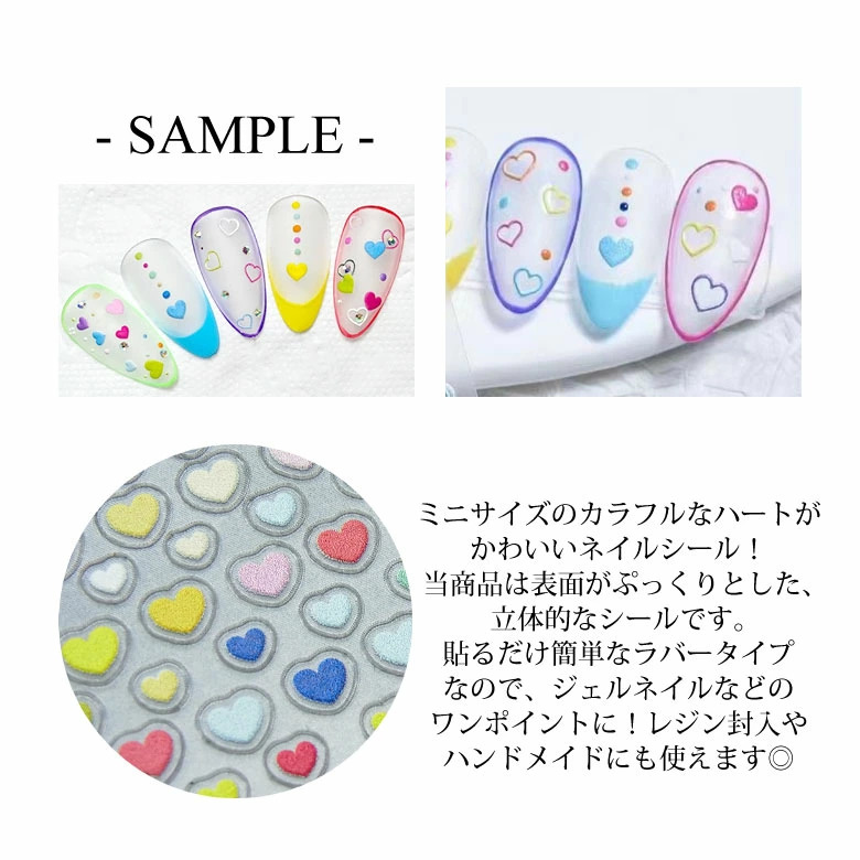 ミニサイズのカラフルなハートがかわいいネイルシール!