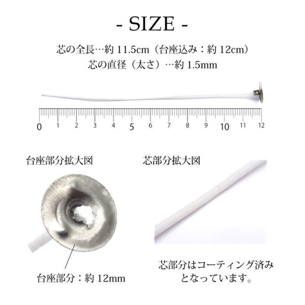 キャンドル 芯 コーティング済み 台座付き 10本セット