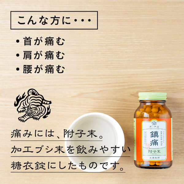 関連キーワード : 痛み、冷え、腰痛、関節痛、神経痛、鎮痛、強心、利尿、首が痛い、肩が痛い、腰が痛い、附子末、ブシ末、腰痛 漢方薬、五十肩、四十肩、肩の痛み