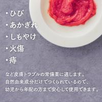 ひび、あかぎれ、しもやけ、魚の目、あせも、ただれ、外傷、火傷、痔核による疼痛、肛門裂傷、湿疹・皮膚炎