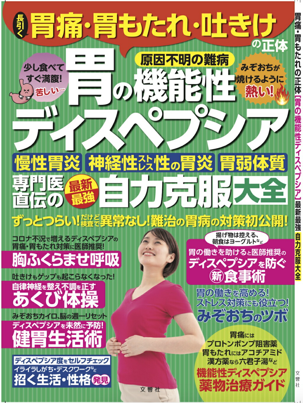 「胃痛や胃もたれ・胸やけ…症状はあるけれど検査では異常なし」「胃痛で病院に行ったら、神経性・ストレス性胃炎と診断された」……そんなあなたは、今激増中の胃の病気、機能性ディスペプシアかもしれません。日本人を悩ませる胃痛の原因の約半数、健康診断を受けた人の10人に1人は機能性ディスペプシアが認められるそうです。コロナ不況で胃が痛い、不安で食事を食べてもすぐおなかいっぱいなる、昔から胃弱だった…そんな方は機能性ディスペプシアの疑い濃厚です。機能性ディスペプシアは、ストレスや自律神経の乱れなどが原因のため、病院での治療に加えてセルフケアはとても大切です。患者数は多いのに情報がまだほとんど出ていない、国民病ともいうべきこの病気を、一般書として日本で初めて徹底解説します。[本書で紹介する内容]★激増する新国民病「機能性ディスペプシア」の正体がわかった★あなたの胃痛、胃もたれは機能性ディスペプシア?セルフ診断★機能性ディスペプシアの回復を早める食品&食事術★自律神経の乱れをリセットする「おなかの神経マッサージ」★ストレスを減らす「胸ふくらませ呼吸」★機能性ディスペプシアによく効く薬ガイド★朝ヨーグルトやみぞおちカイロなど、防ぐ生活一覧/ほか