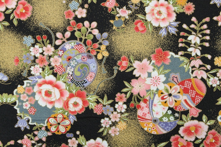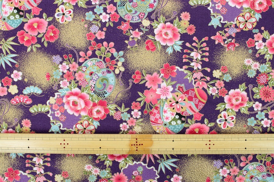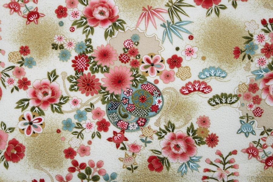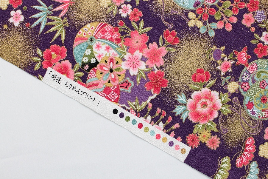生地 布 綿ちりめん風 花柄 和柄 エンボス加工 綿プリント 約110cm幅 綿100%着物風 浴衣 ゆうパケット2m対応 10cm単位価格