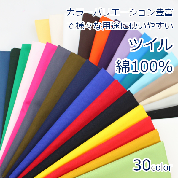 綿ツイル 生地 無地 10cm単位価格 日本製 布 定番 約110cm幅 入園入学 バッグにおススメ 手芸 ハンドメイド 手作り ゆうパケット2m対応