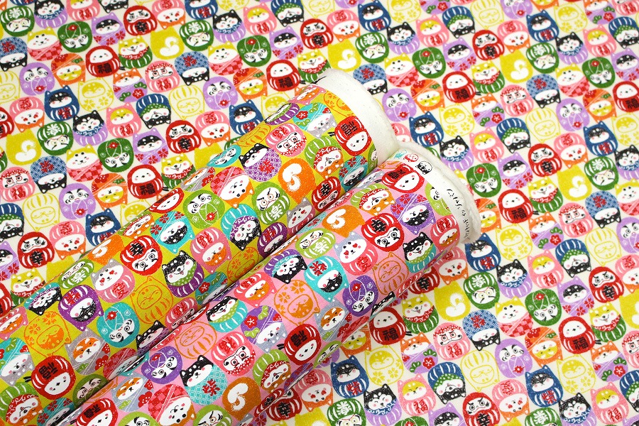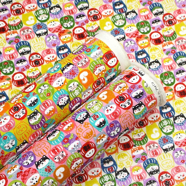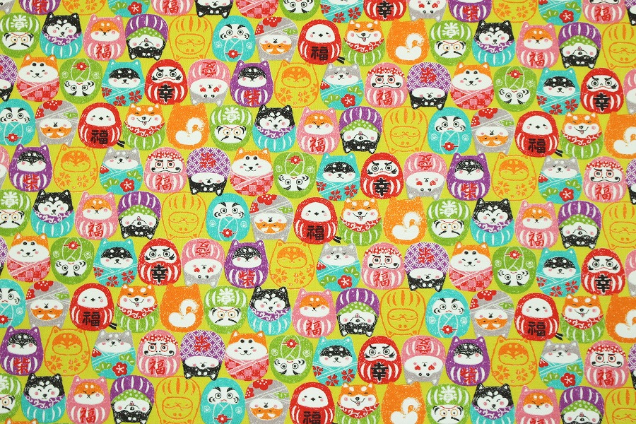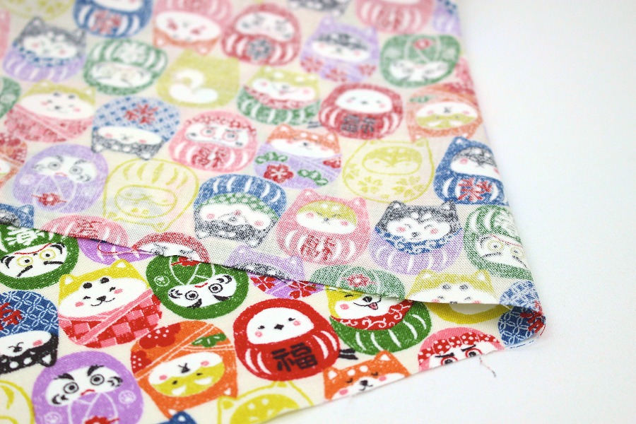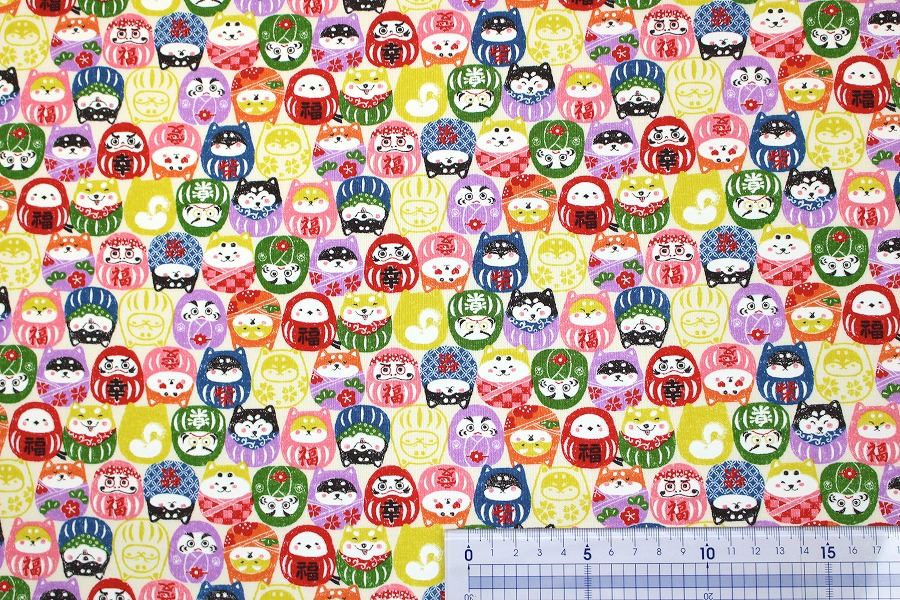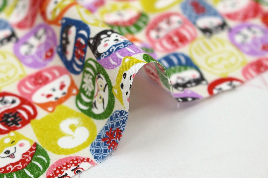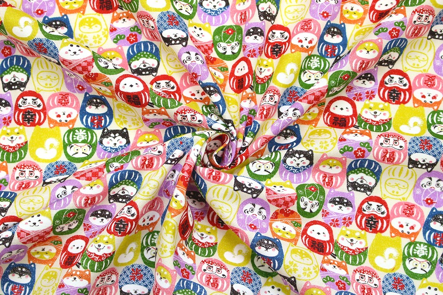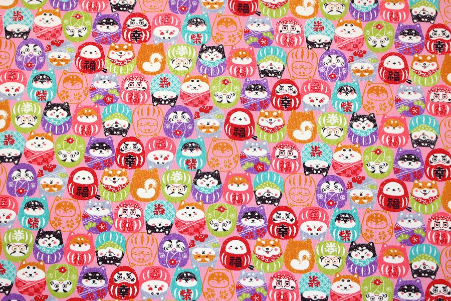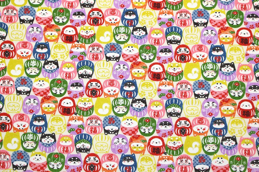 生地 布 わんこだ和 だるま 達磨 わんちゃん 動物柄 和柄 スケア シーチング 綿100% 約110cm幅 COCO2502-2 ゆうパケット2.5m対応 10cm単位価格