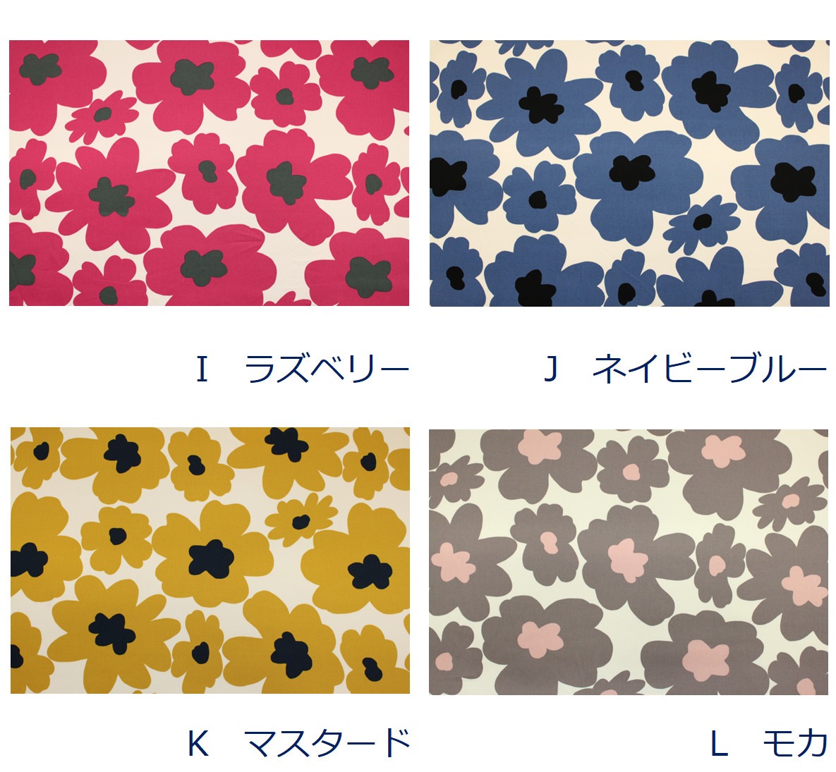 大きな花柄がインパクトな北欧風のプリント生地です。