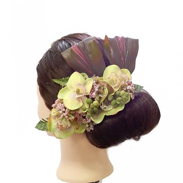 お手持ちの髪飾りに合わせてお使いになるとボリュームアップ効果があり華やかさが増します。
