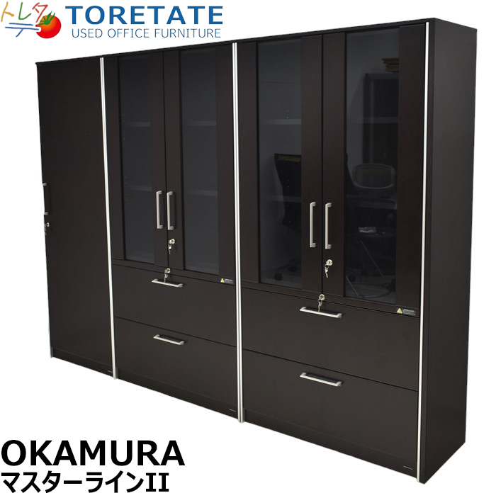 ■備考 オカムラ 岡村製作所 Okamura マスターラインII ガラス書棚+ワードローブ 3連結セット W2420