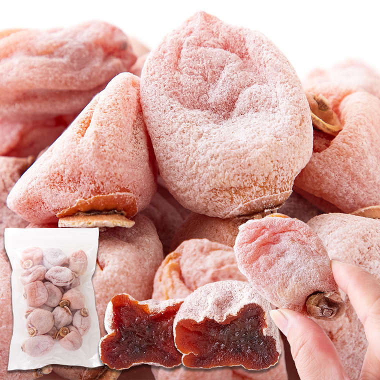 ※干柿の表面の白い粉は果実内に含まれるブドウ糖がにじみ出て結晶となったものです。