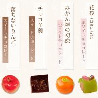 | 栄養成分表示 | 【上生しょこら(花筏)】エネルギー380kcal/たんぱく質5.0g/脂質12.8g/炭水化物64.2g/食塩相当量0.044g/灰分0.2g/水分0.5g/ナトリウム17.5mg(100g当たり) 【上生しょこら(みかん畑の初恋)】エネルギー374kcal/たんぱく質5.1g/脂質11g/炭水化物64.7g/食塩相当量0.040g/灰分0.2g/水分1.4g/ナトリウム15.8mg(100g当たり) 【上生しょこら(チョコ羊羹)】エネルギー344kcal/たんぱく質3.4g/脂質5.2g/炭水化物75.3g/食塩相当量0.037g/灰分0.4g/水分5.4g/ナトリウム14.5mg(100g当たり) 【上生しょこら(落ちないリンゴ)】エネルギー355kcal/たんぱく質6.4g/脂質10.2g/炭水化物64.4g/食塩相当量0.057g/灰分0.8g/水分0.5g/ナトリウム22.3mg(100g当たり) |