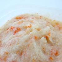 原材料 : ずわい蟹(韓国産)、食用植物油脂、醤油、粉末水飴、動植物蛋白加水分解物、胡椒/pH調整剤、トレハロース、調味料(アミノ酸等)、酸化防止剤(V.C、トコフェロール)、(原材料の一部に小麦、かに・大豆、ゼラチンを含む)