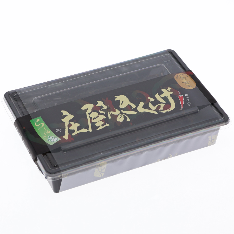 コリコリした選りすぐりのきくらげに庄屋さん独自の味付けで辛みを効かせ、ニンニク・ラー油で味を調えました。