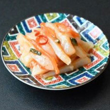 いか(アルゼンチン産、ニュージーランド産)、人参、食塩、トマトペースト、米発酵調味料、ニラ、たん白加水分解物、砂糖混合異性化液糖、ガーリックペースト、砂糖、唐辛子、還元水飴、醸造酢、ごま、濃縮リンゴ果汁/調味料(アミノ酸等)、酒精、ソルビット、甘味料(ステビア)、増粘多糖類、酸味料、着色料(紅麹、パプリカ)、ph調整剤、(一部にいか・大豆・牛肉・豚肉・ごま・リンゴを含む)
