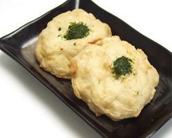 魚肉、具(馬鈴薯、バター、食用植物油脂、食用精製加工油脂、脱脂粉乳、無糖練乳、山芋、青のり、塩胡椒(食塩、胡椒、コーングリッツ、上新粉、馬鈴薯澱粉、酵母エキス))、卵白、砂糖、食塩、味醂、植物油、加工澱粉(小麦由来)、調味料(アミノ酸等)、保存料(ソルビン酸K)、乳化剤、香料、着色料(カロテン)、(原材料の一部に小麦、乳、大豆、さけを含む)