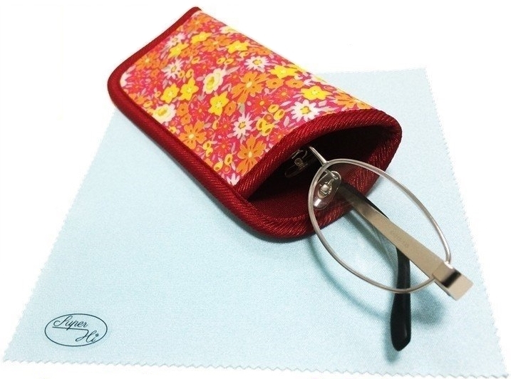 メガネケース ポーチ ペンケース メガネ 入れ トレシー 付き メガネ拭き マイクロファイバー メガネクロス [ 差し込み メガネケース 花柄 レッド ]