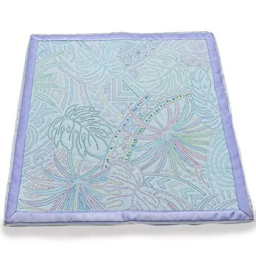 柔らかなパステルカラーの糸で繊細にステッチされた「シャドーキルト」のテーブルセンターマットです。