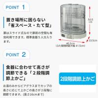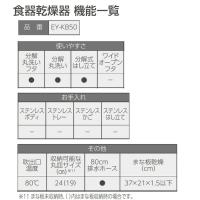 | 仕様・ 特徴 | 置き場所に困らない、象印独自のたて型タイプ。 食器乾燥器 5人用 消費電力:290W スライド扉 まな板乾燥可能 80cmロング排水ホース 電源コードの長さ:1.8m 省スペース 2段階調節上かご Ag+抗菌(水受け、はし立て) 高温80℃乾燥(吹き出し口温度) 最大まな板サイズ:幅370×長さ210×厚さ15mm |