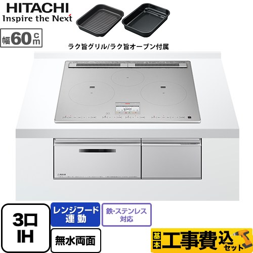 工事費込みセット N100Tシリーズ IHクッキングヒーター 幅60cm 日立 HT-N100STF-S 3口IH 鉄・ステンレス対応 プレミアムシルバー IHヒーター IH調理器