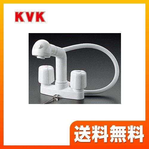 [KF64] KVK 洗面水栓 ツーホールタイプ(台付き) 2ハンドル洗髪シャワー ゴム栓 逆止弁 快適節水 取付穴径(mm):φ22〜24 洗面台 洗面所 蛇口 【パッキン無料プレゼント!(希望者のみ)】 【送料無料】 おしゃれ 洗面水栓 KVK KF64