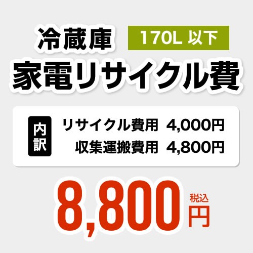 【170L以下】冷蔵庫用 家電リサイクル費 【リサイクル費用4000円 + 収集運搬費用4800円】 ※業務用不可・搬出経路+10cm必要 RECYCLE-FREEZER