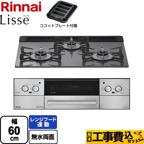 工事費込みセット Lisse リッセ 乾電池タイプ ビルトインコンロ 幅60cm リンナイ RHS31W42J4RSTW-13A オーブン接続対応 サテンシルバー 【都市ガス】