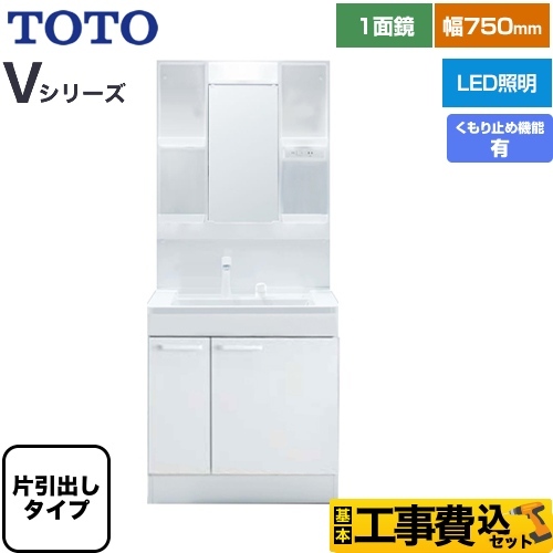 【キーワード】片側スライド収納 / くもり止め機能有 / 一面鏡 / LED照明 / 洗面台 / 洗面所 / 商品+基本工事費セット / 取り付け工事込み / Vシリーズ / 75cm 【 T-VS-039-75-A (LDPB075BJGEN1A+LMPB075A1GDC1G) の後継品 】