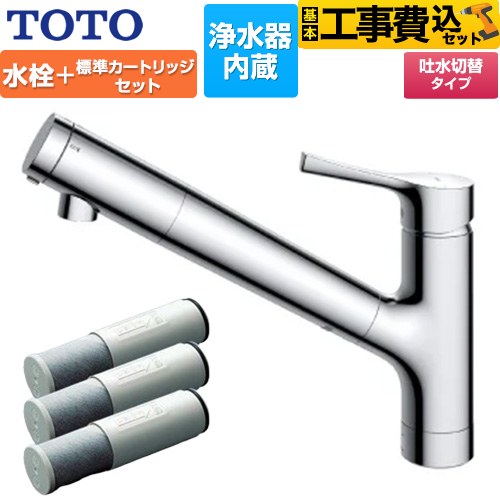 工事費込みセット 台付シングル混合水栓+浄水器カートリッジ(3本入り)セット キッチン水栓 浄水カートリッジ内蔵 TOTO TKS05307J+TH658-1S 台付 ワンホール