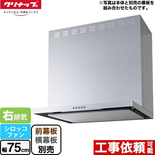| 仕様・ 特徴 | 間口75cm LED照明(3W) 風量速調:3速 フード本体、整流板、パンチングフィルター:はつ油加工 壁付け給気電動シャッター連動端子付 排気電動シャッター連動コネクター付き 右排気 |