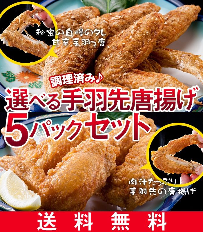 手羽先唐揚げ 甘辛手羽っ唐揚げ 選べるから揚げ5Pセット 調理済み 温めるだけの手羽先唐揚げレンジでチン 鳥益 おつまみ