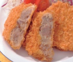 ★野菜(ばれいしょ、たまねぎ)、豚肉、小麦粉加工品、しょうゆ、粒状大豆たん白、発酵調味料、ラード、砂糖、チキンエキス調味料、ポークエキス、食塩、衣(野菜パン粉、小麦粉、でん粉)/着色料(パプリカ粉末)、調味料(アミノ酸等)、増粘多糖類、(一部に小麦・乳成分・大豆・鶏肉・豚肉を含む)