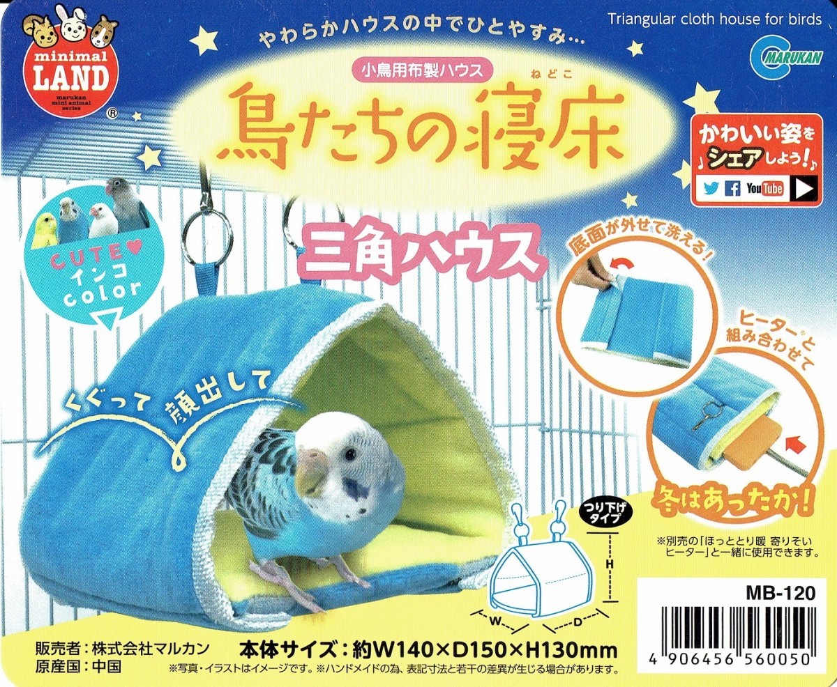 インコのおもちゃ 小鳥たちの寝床 三角ハウス マルカン MB-120(インコのテント・ベッド・ハウス)
