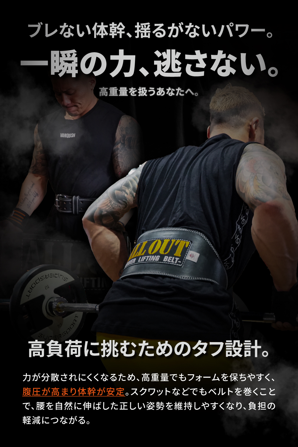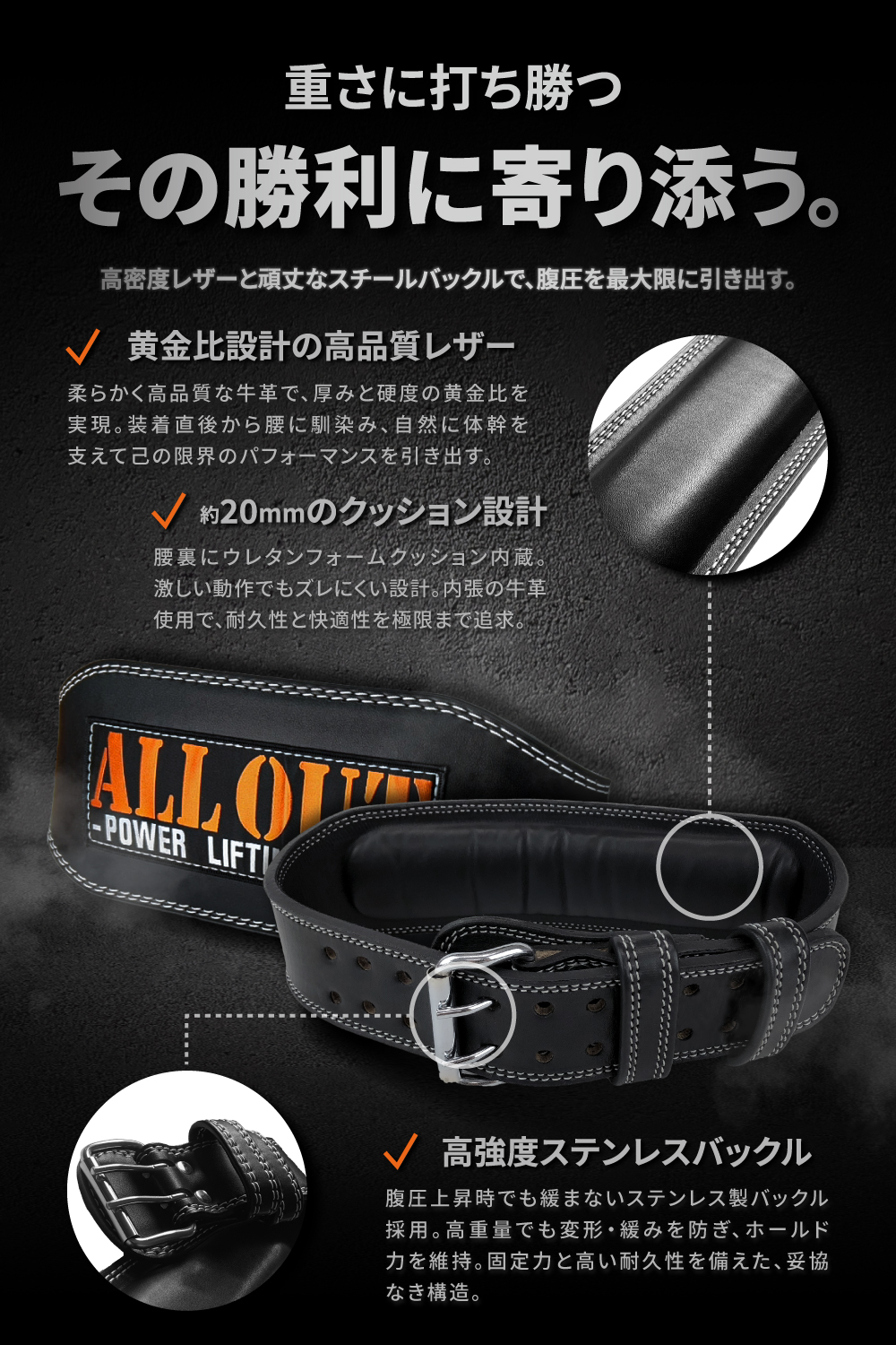 ALLOUT公式 トレーニングベルト 横川尚隆選手愛用 パワーベルト 筋トレ ウエイトベルト レザー リフティングベルト 最高級牛革Cowhide使用 ポイント利用 爆買