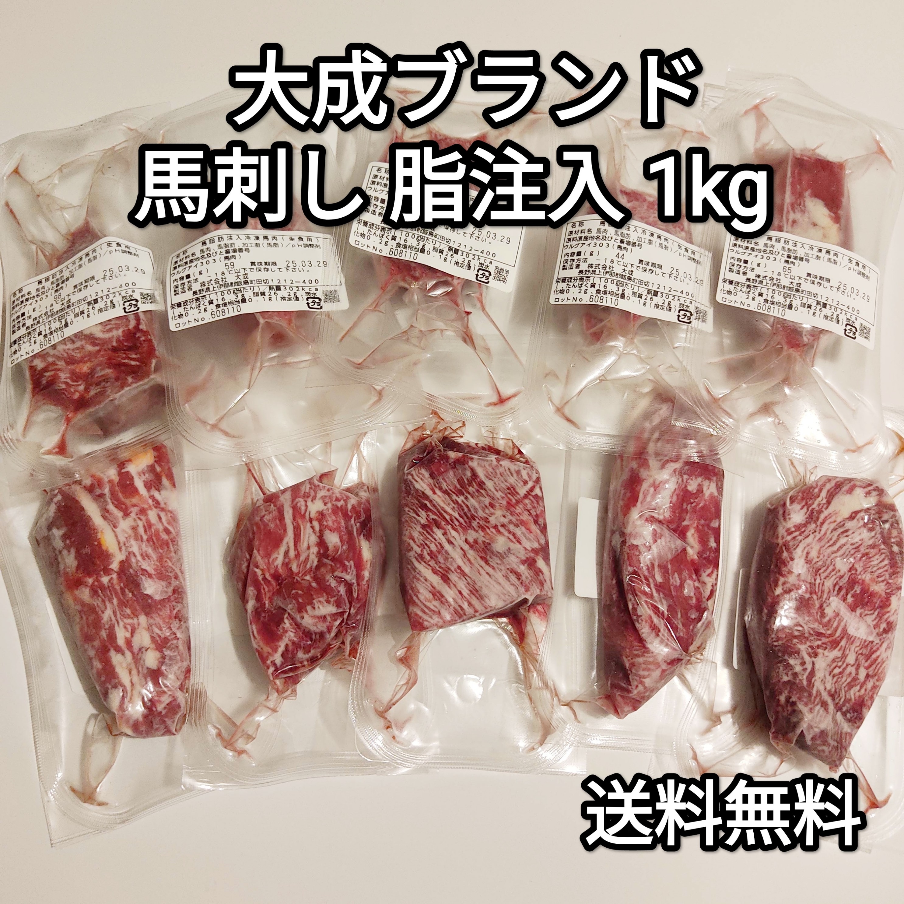 馬刺し 1kg 馬脂注入 もも,肩肉 約30-100g 大成ブランド 生食用 外国産 冷凍品 送料無料
