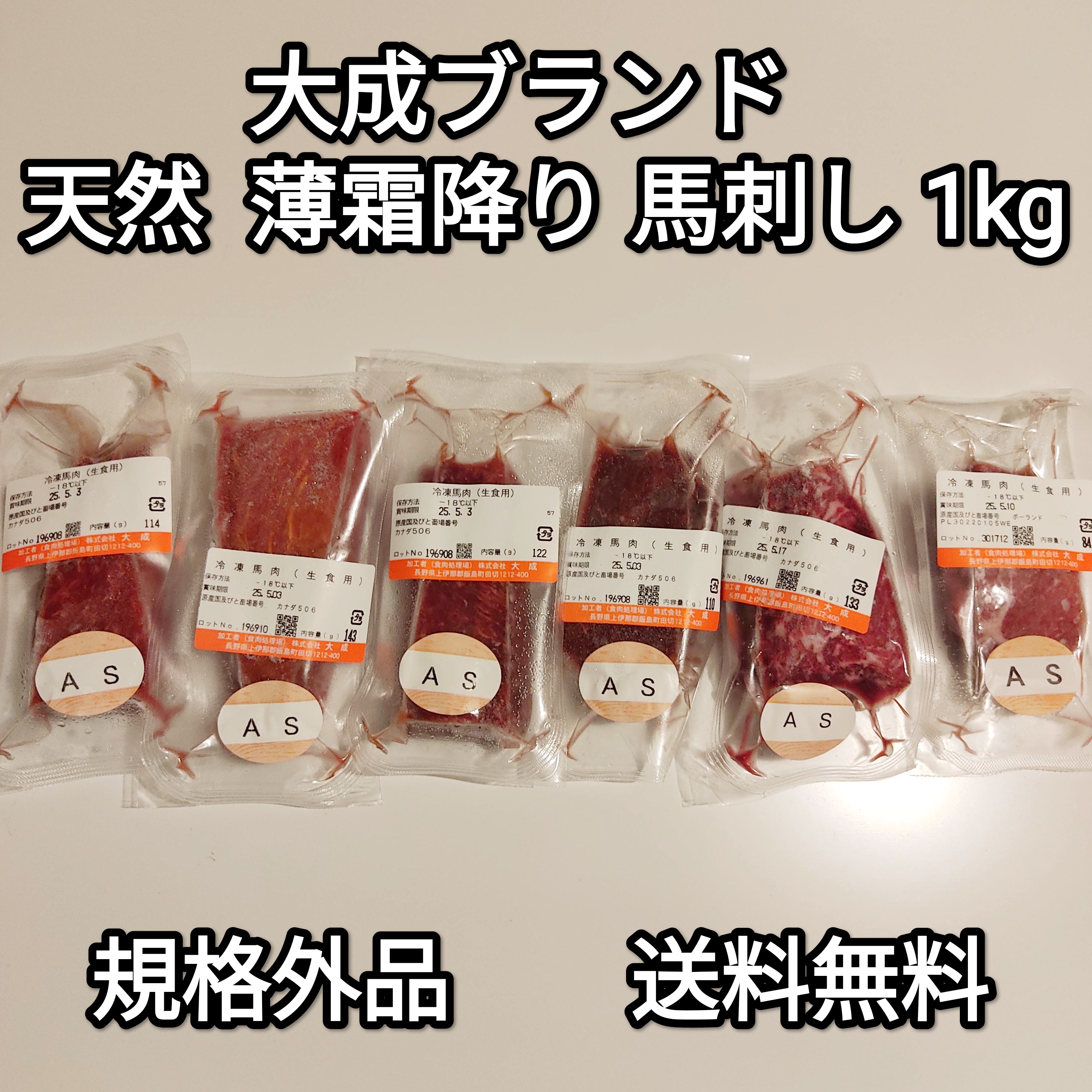 ●馬刺し 1kg 天然 薄霜降り 大成ブランド 訳あり 規格外品 生食用 外国産 冷凍品 送料無料