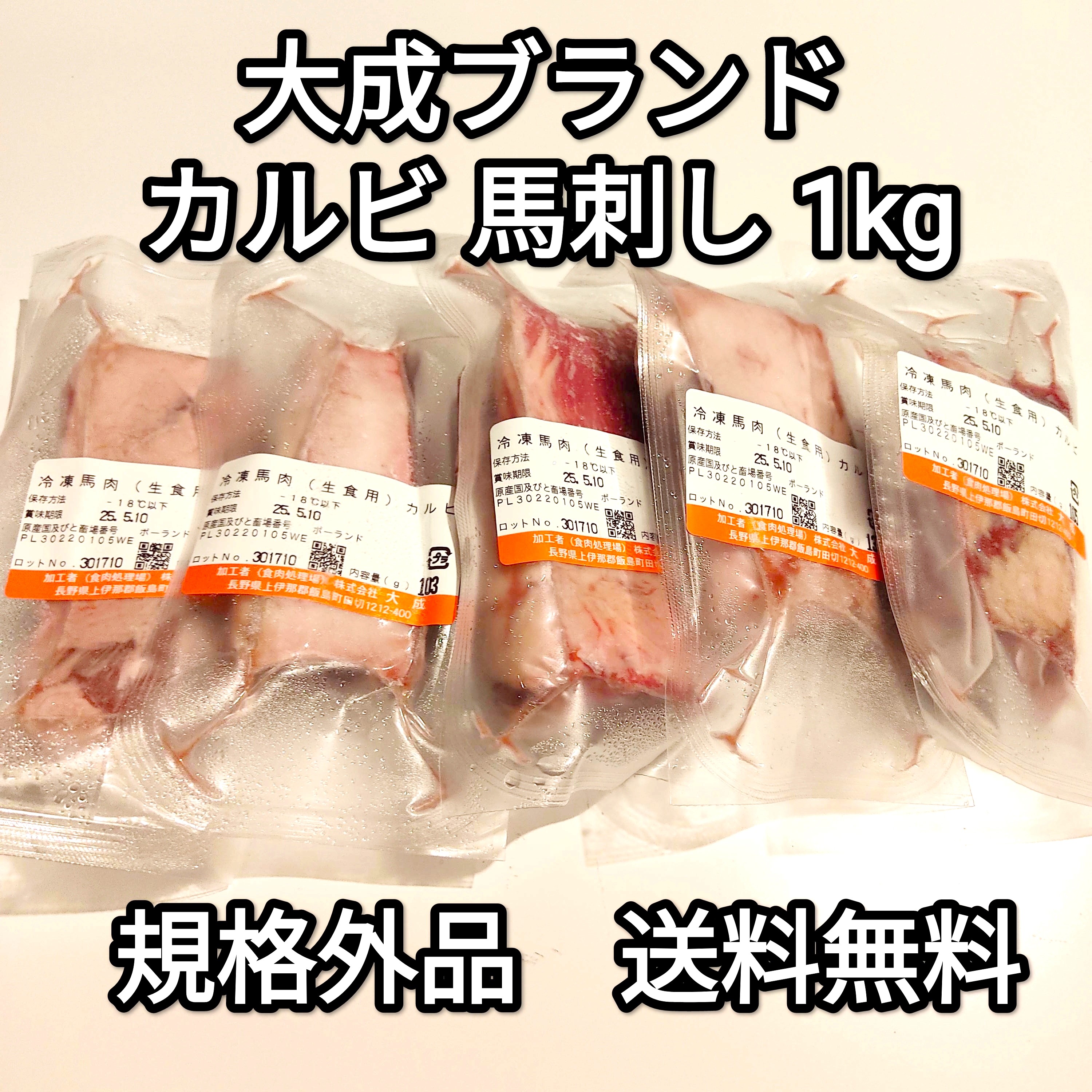馬刺し 1kg カルビ 大成ブランド 訳あり 規格外品 生食用 外国産 冷凍品 送料無料
