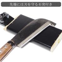 少し幅広で、刃の先端には、石などに当たって刃がこぼれるのを防ぐために、「石突き」と呼ばれる突起が付いています。