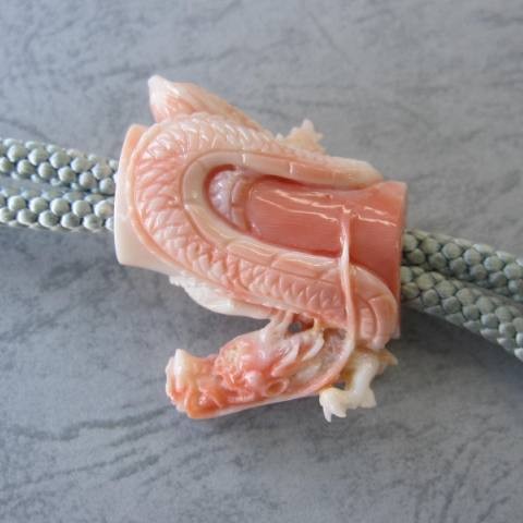 桃珊瑚昇り龍の彫りのループタイ/メンズアイテム/『宝石サンゴ』