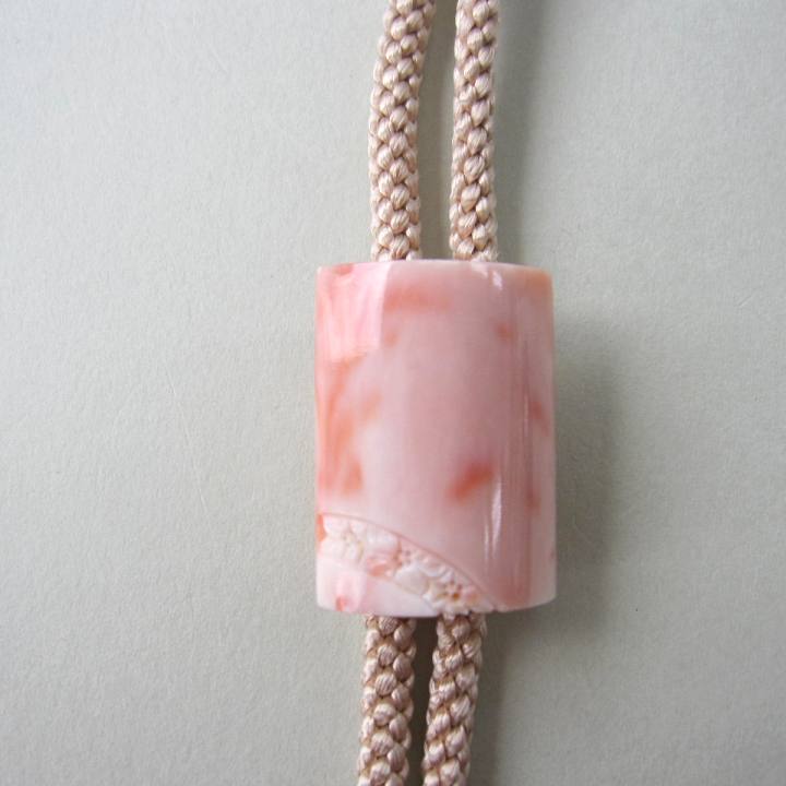 ピンク珊瑚 ループタイ 人絹 メンズアイテム 真鍮 宝石サンゴ 珊瑚婚 還暦 誕生日 御祝 厄除 御守 3月の誕生石 ギフト プレゼント 結婚35周年 珊瑚職人