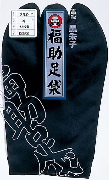 メール便送料無料 足袋 高級黒朱子 4枚コハゼ(サラシ裏)(26.5〜28.0cm) 福助足袋シリーズ 福助取り寄せ商品