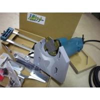 刃物は本体装着分のみ付属しています。もちろん予備の刃が単品販売いたします。高さの微調整機能がありますので、固めに突いてフロアを差し込んでからもう一度墨半分突きなおすことも可能です。刃物は右回転で、回りますので柱を突くと正面側は多少バリが出ます。対策として、逆送り(左から右へ)送ると押さえ込み削りになりますのでほとんど飛びませんが油断をすると機械が走りますので、必ず両手で本体を持ってください。柱左側面はどちらから送ってもバリが出ませんが柱右側面は、どちらから送ってもバリが出ます。そのため右側面のバリ対策は、突く前に鑿やカッターナイフで墨に切り込みを入れてください。