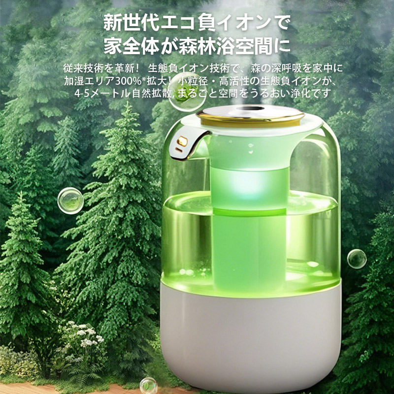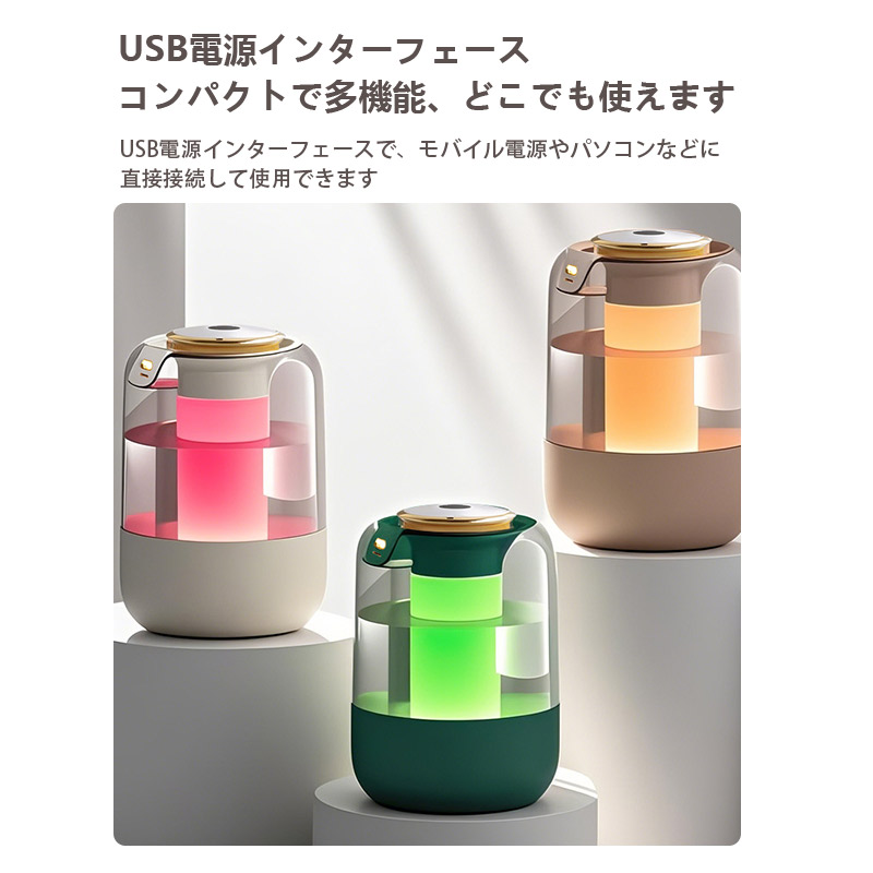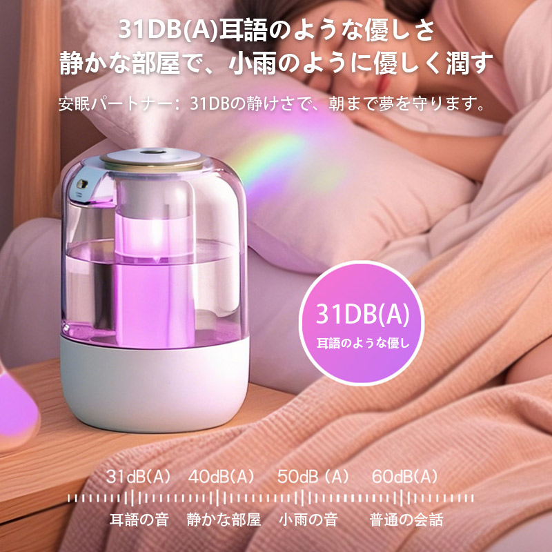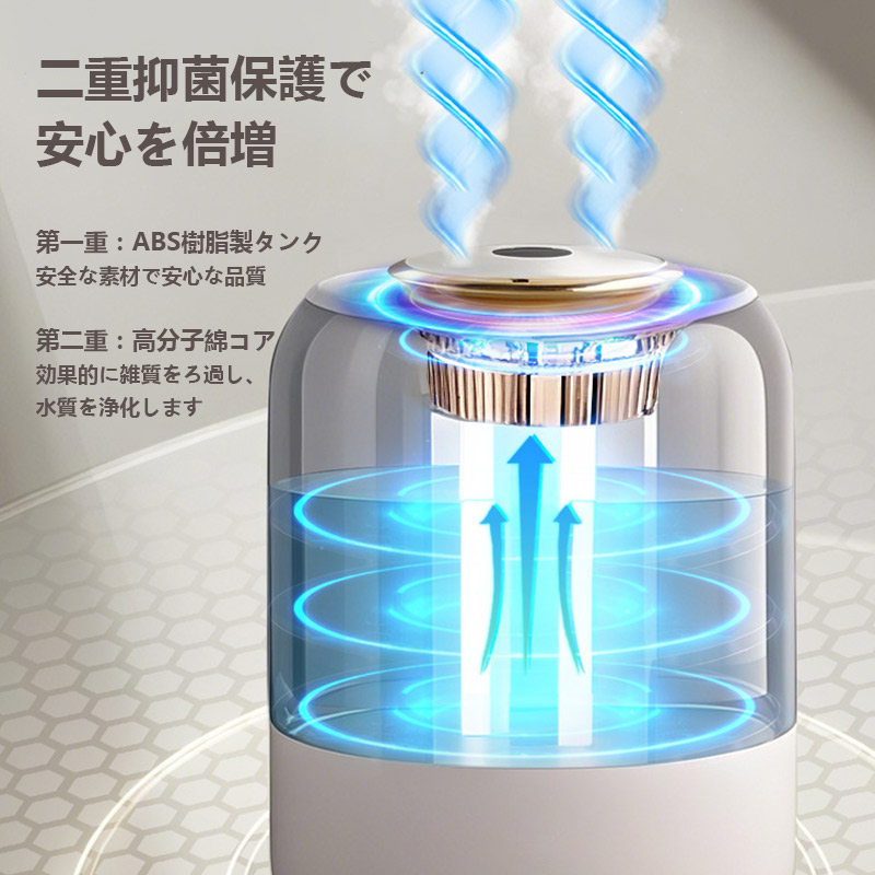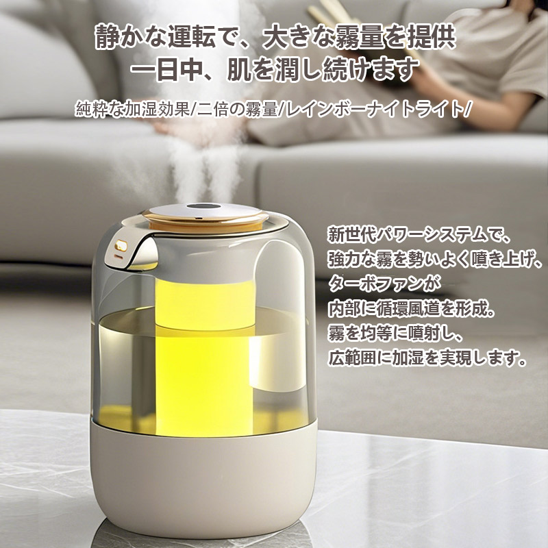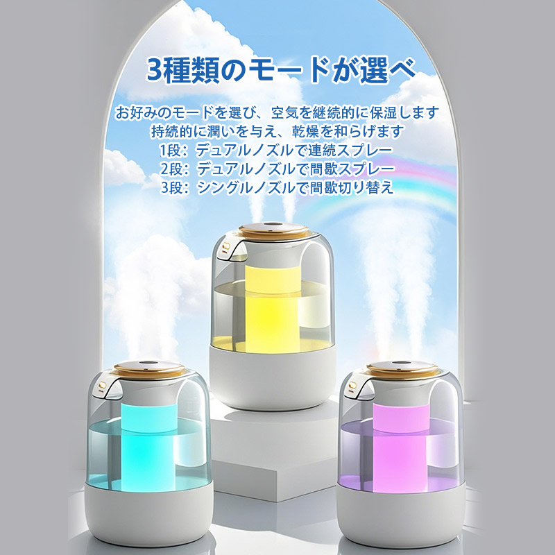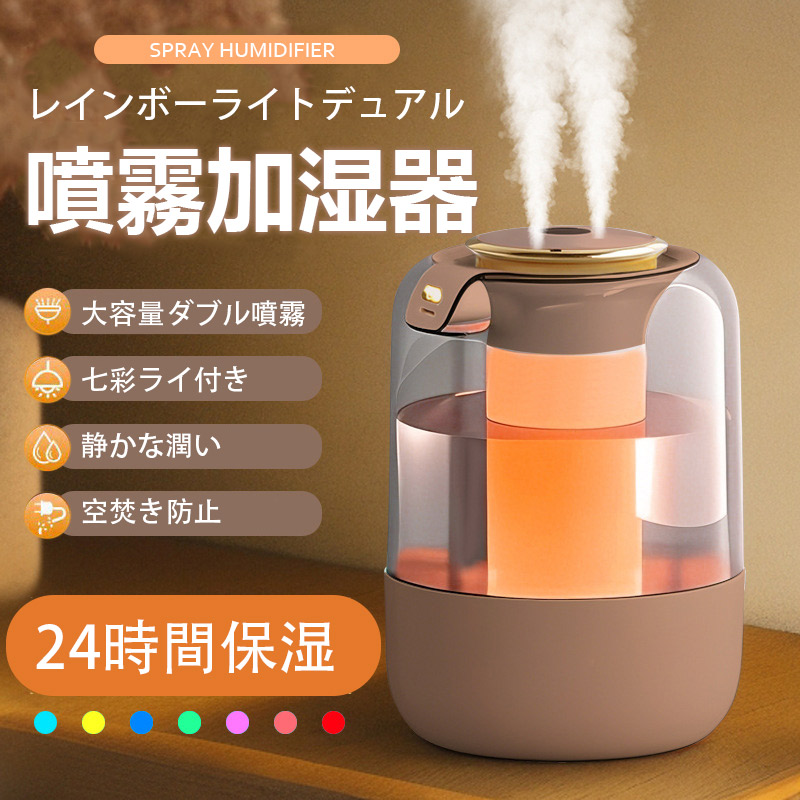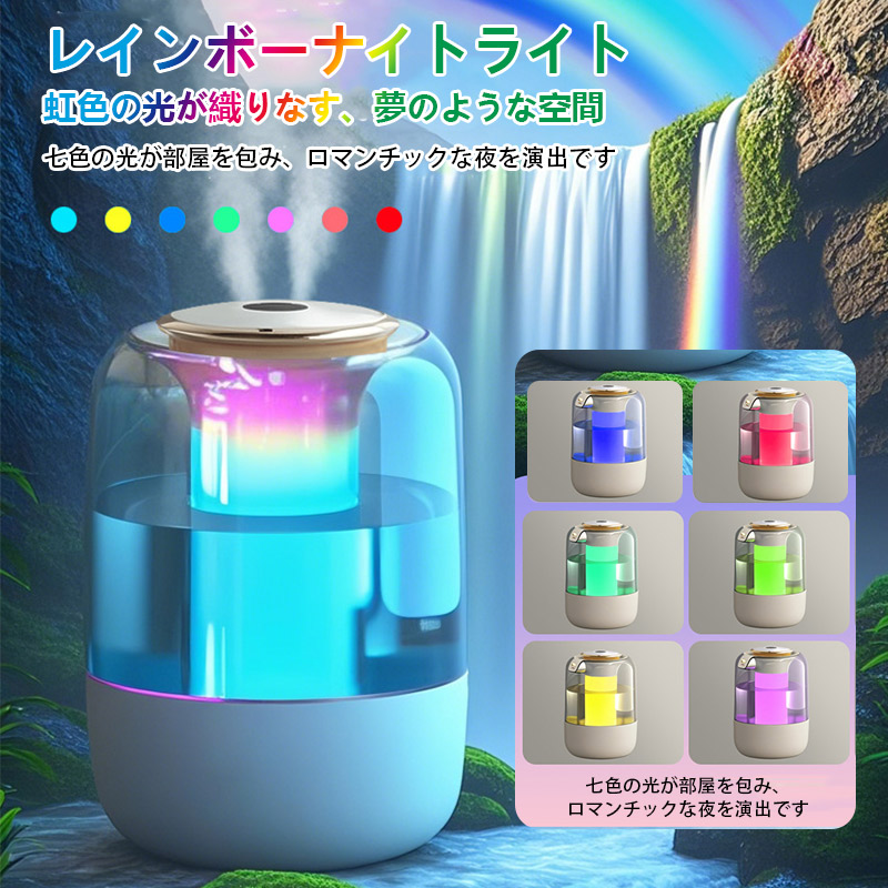 15日までセール2080円 加湿器 卓上加湿器 小型 空気清浄機 デュアル噴霧口 加湿機 湿度表示 大容量 タイマー 調節 空焚き防止 レインボーライト付き 3段階調節