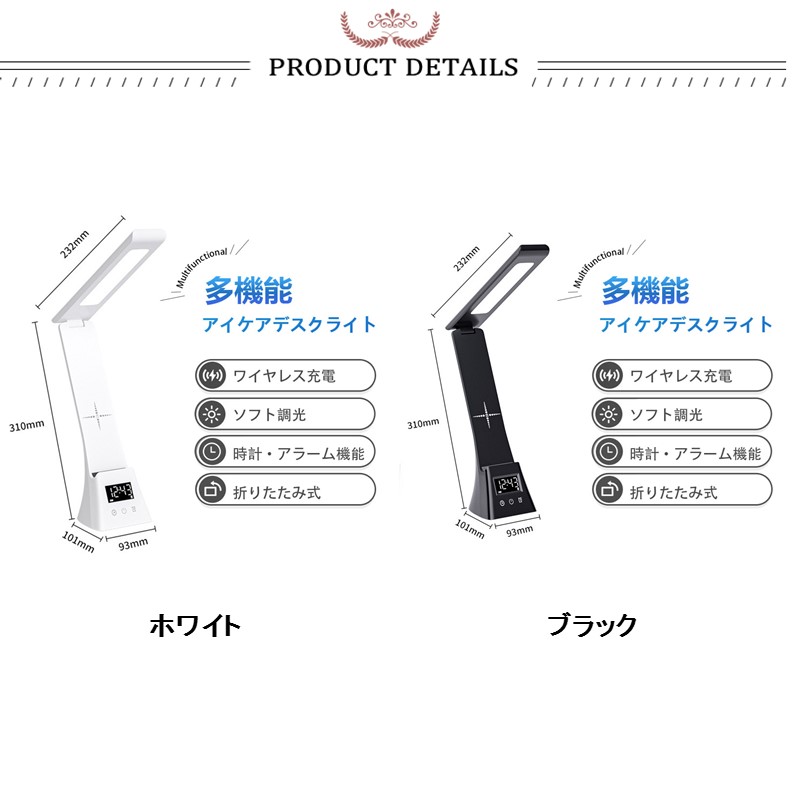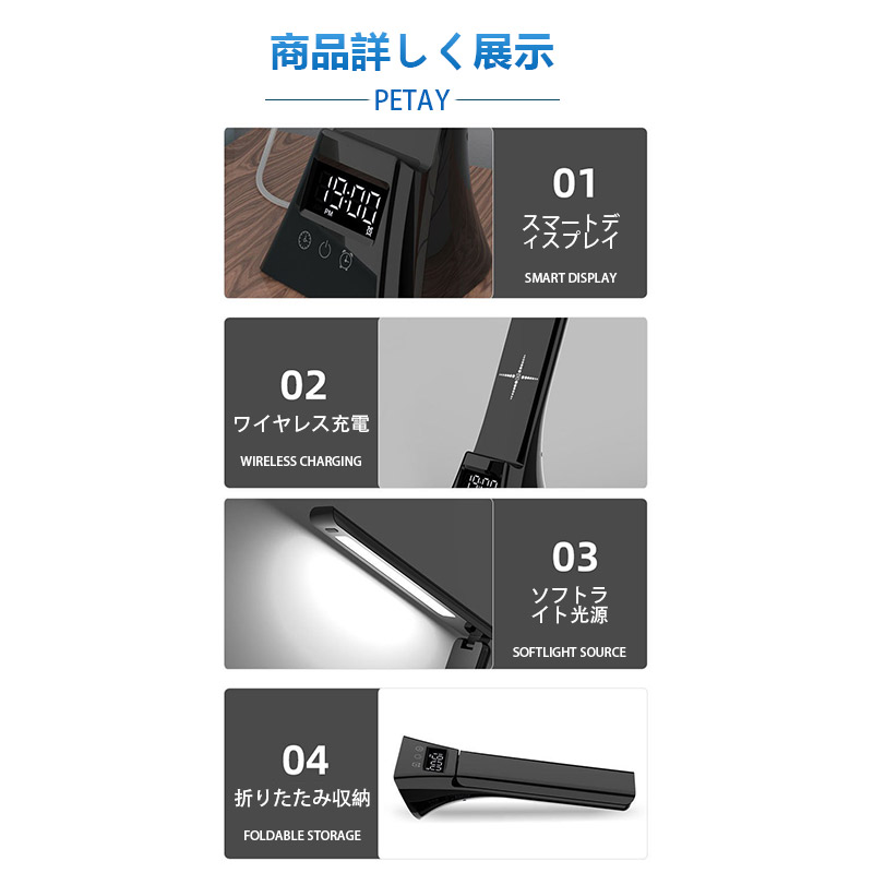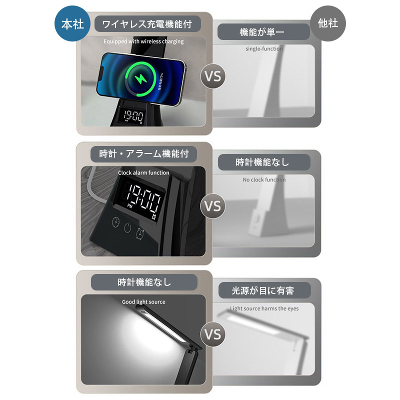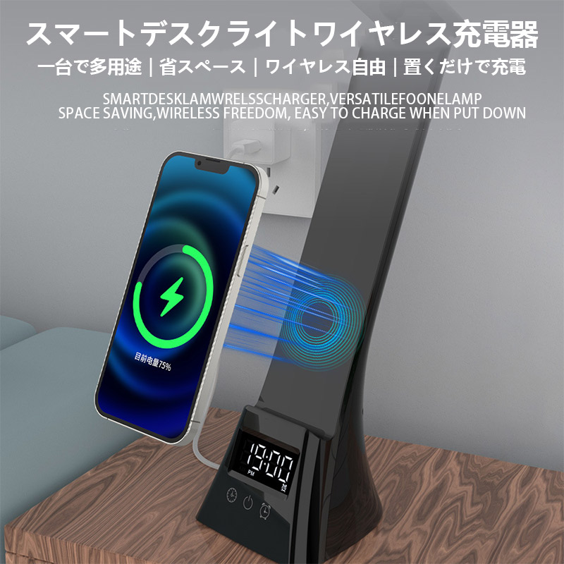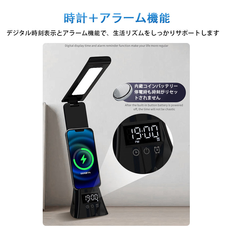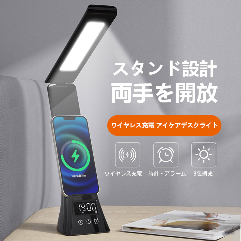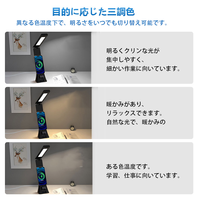 デスクライト 電気スタンド スタンドライト LED ライトUSB給電式 スマホ充電 読書灯 学習机 勉強 卓上ライト無段階調光 アラーム 調光