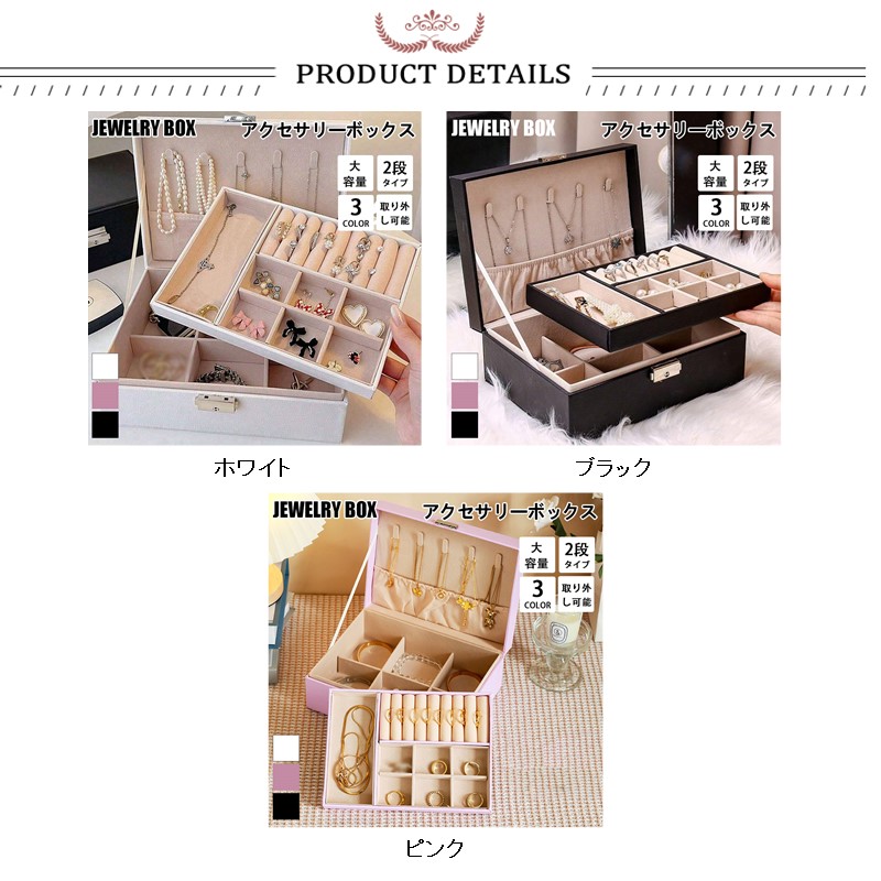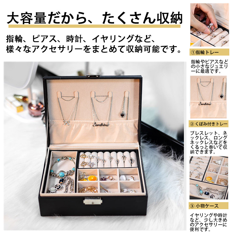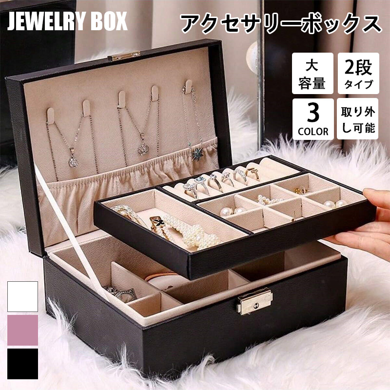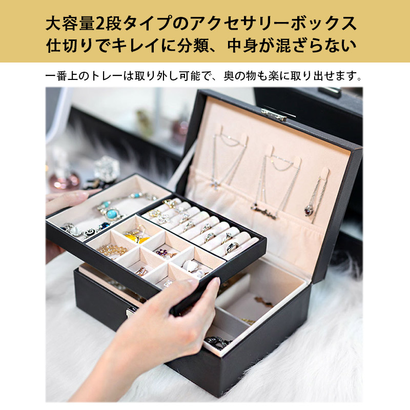 150円off アクセサリーケース ジュエリーボックス 2段 鍵付き 大容量 アクセサリー収納ボックス 時計 指輪 ピアス ネックレス 宝石箱 小物入れ ピアス入れ 爆買
