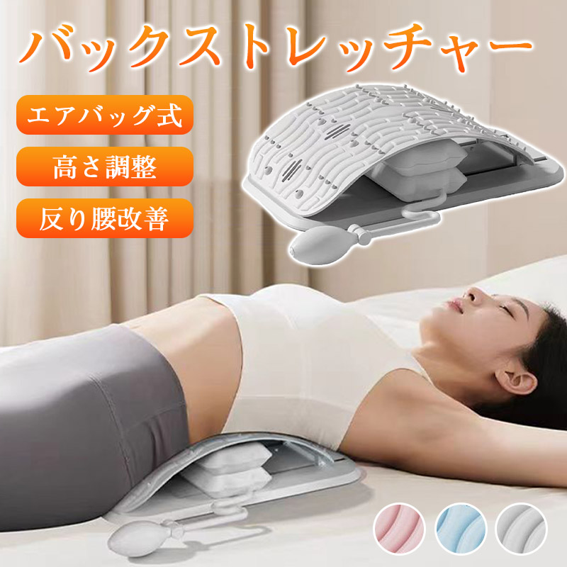 バックストレッチャー エアバッグ式 腰椎サポート 腰痛 坐骨神経痛 緩和 椎間板ヘルニア 反り腰改善 首 肩甲骨 背中 伸ばし ストレッチ 高さ調整