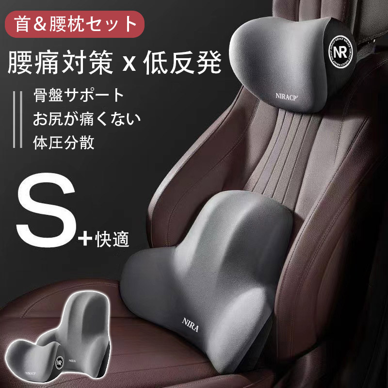 クッション 車 首 腰 セット ネックパッド ランバーサポート 運転 座席 シートクッション 車用クッション 低反発 骨盤サポート 腰痛対策