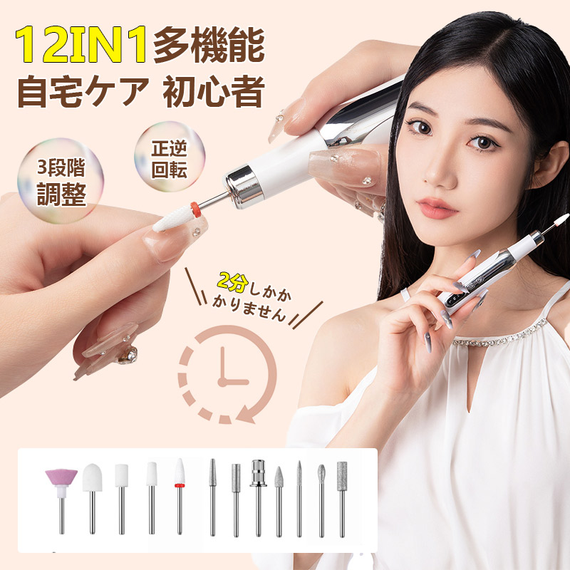 【12in 1多機能 】12種類のビッドが付属して、 爪の先や甘皮部分の処理や爪周りの古い角質の処理など、いろんな用途にご使用頂けます!